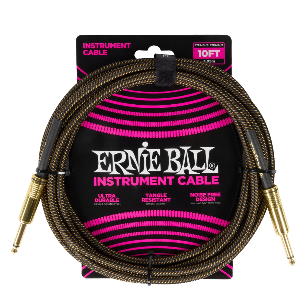 Ernie Ball 6428EB 1/4in To 1/4in Straight Braided Cable (Pay Dirt) - 10ft
