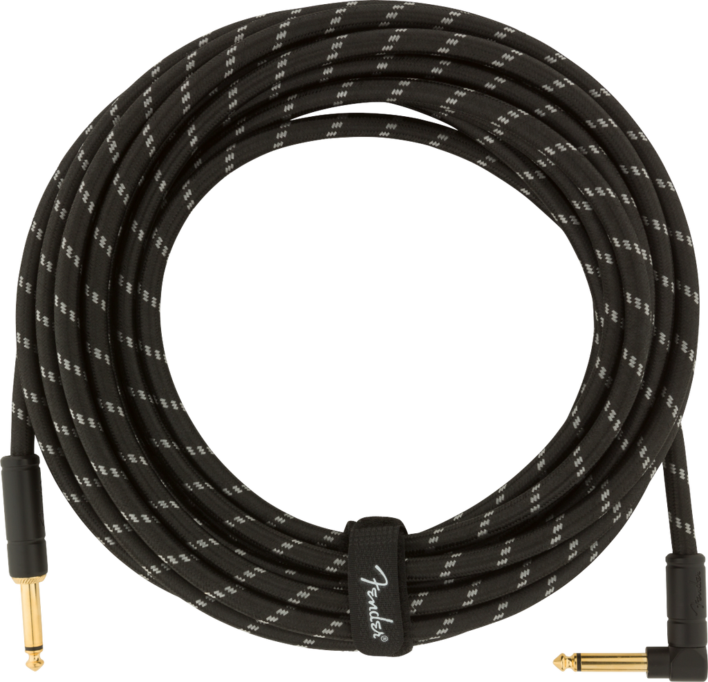 Fender DELUXE Series Straight/Angle Instrument Cable (Black Tweed) - 25ft