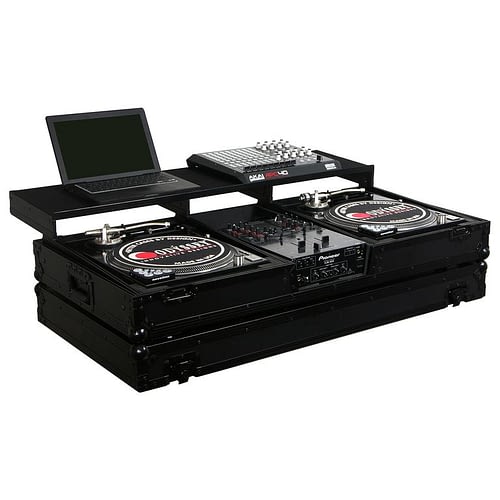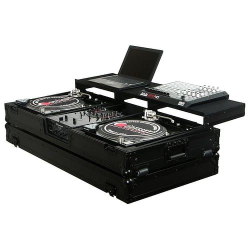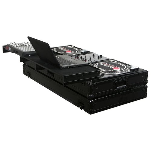 Odyssey FZGSPBM10WBL Universal Format DJ Mixer and Two Battle Position Turntables Flight Coffin Case w/Full Glide Platform - 10" (Black)
