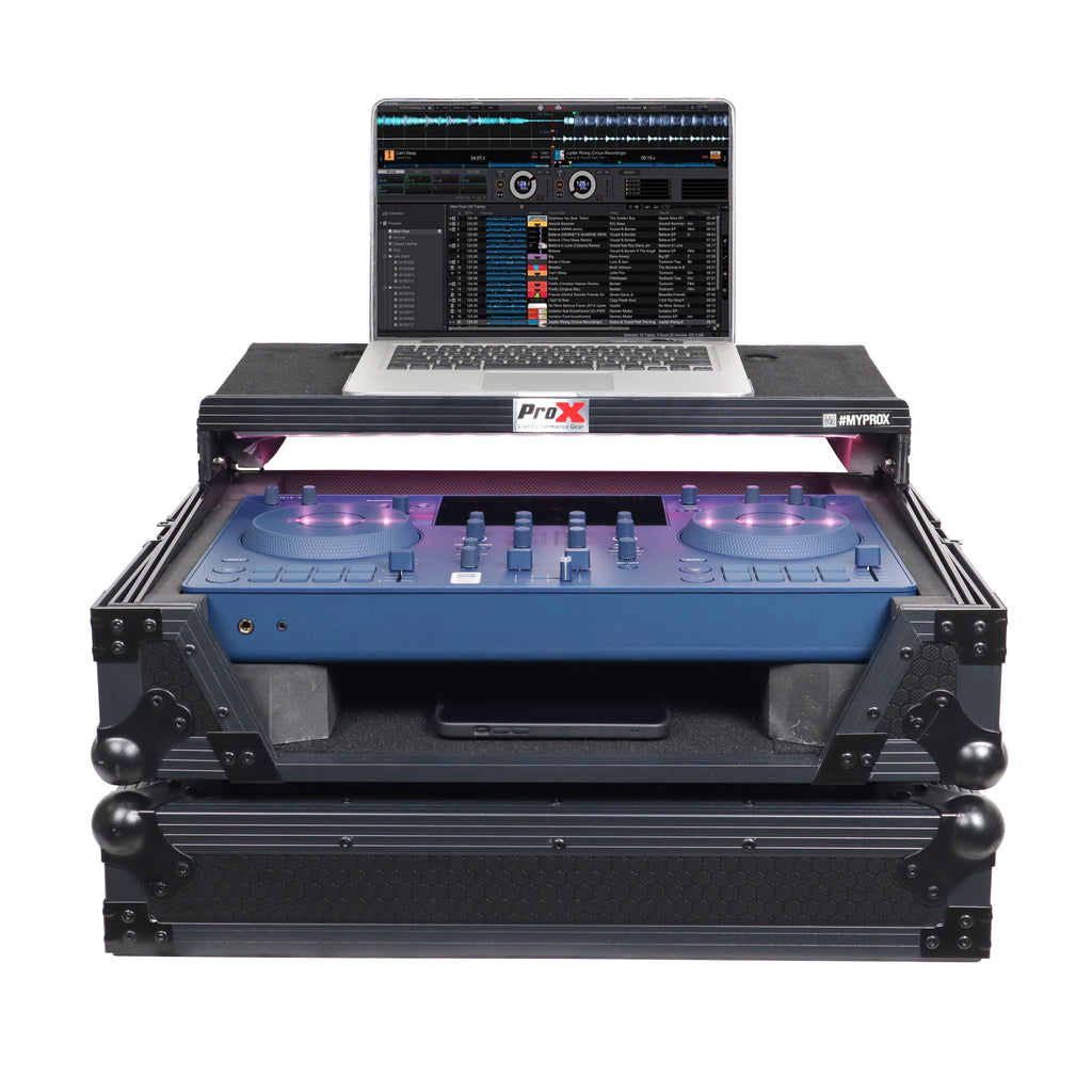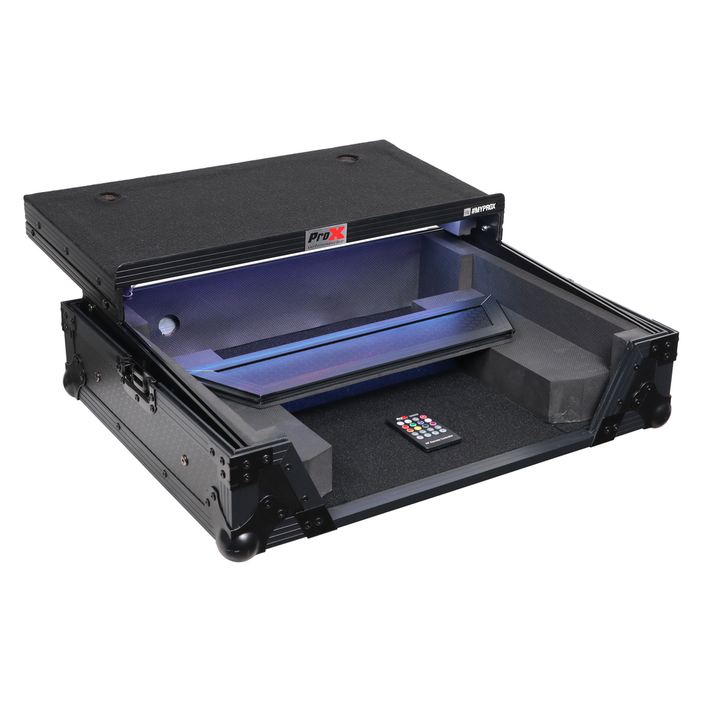 ProX XS-OMNISDUOLTBLLED ATA Flight Case For Pioneer AlphaTheta OMNIS-DUO DJ Controller with Laptop Shelf and LED (All Black)
