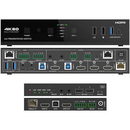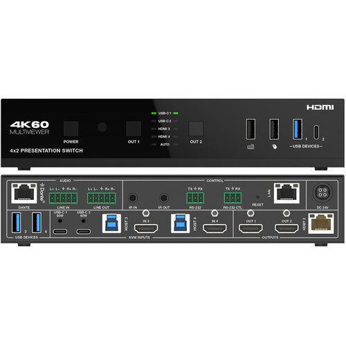 DVDO USBC-HDMI-PS-42-XTEND 4K Seamless Presentation Switcher/Extender with Dante Audio - 4x2