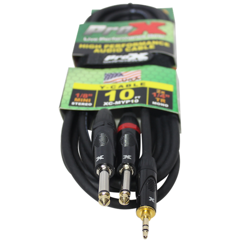 ProX XC-MYP10 Unbalanced 3.5mm. Mini-TRS to Dual TS-M High Performance Audio Y Cable - 10ft.