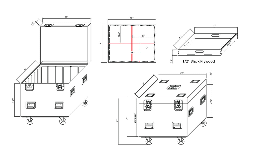 ProX XS-UTL243030WMK2 TruckPaX Heavy-Duty Truck Pack Utility Flight Case W-Divider and Tray Kit