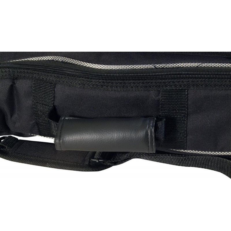 Safely store and transport a baritone-scale ukulele with our lightweight yet rugged GBU4101 Baritone Ukulele Gig Bag. Along with a weather-resistant exterior that defends against the elements, the case features dense padding that shields the uke from damage. A smooth interior lining helps keep the instrument finish looking fresh. Two outer accessories compartments provide convenient access to supplies and tools. A textured rubber bumper at the bottom of the bag prevents slipping to keep the bag safely in place when rested on the floor. Two handles and removable adjustable backpack-style straps enable balanced, comfortable carrying. For ease of storage, a hanging loop is built into the top.