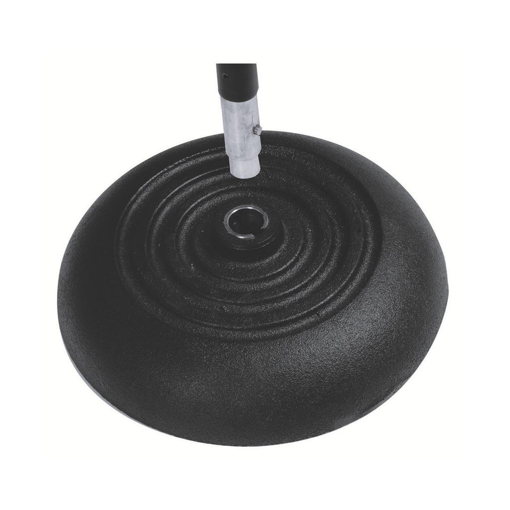 The 10” round base is constructed from sand-cast steel for strength. Six rubber feet on the underside of the base keep the stand stable. A die-cast steel mid-point clutch effortlessly allows height adjustments from 34” to 60”. The entire stand sports a scratch-resistant finish and is built to last gig after gig.
