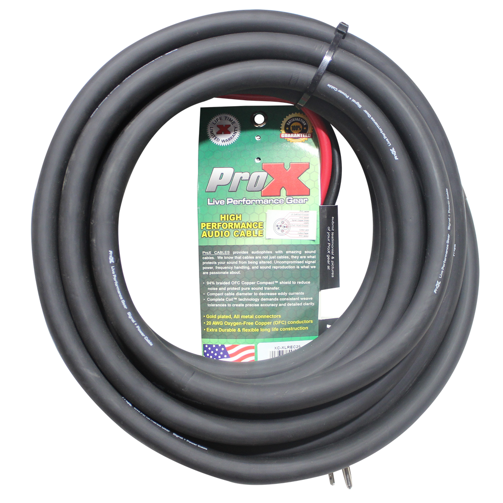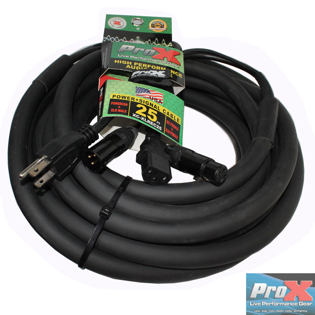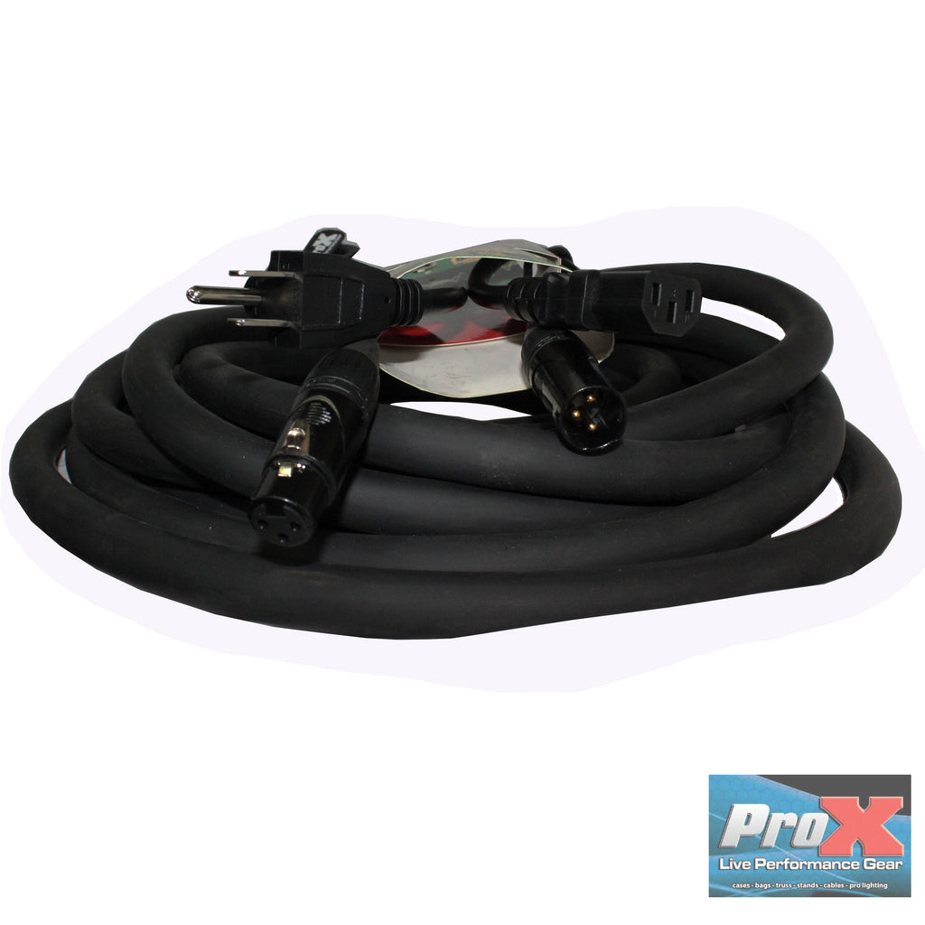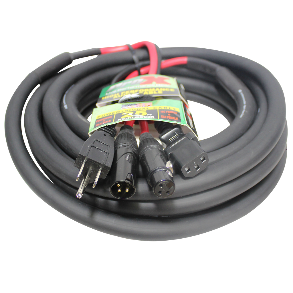 ProX XC-XLREC25 Power Cord/Audio Cable IEC Female to NEMA 15P & Balanced XLR-M to XLR-F - 25ft