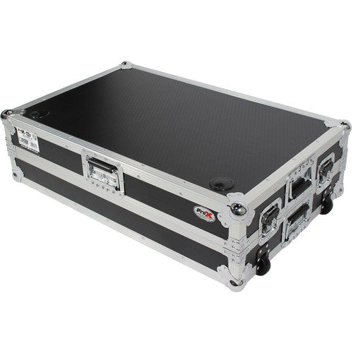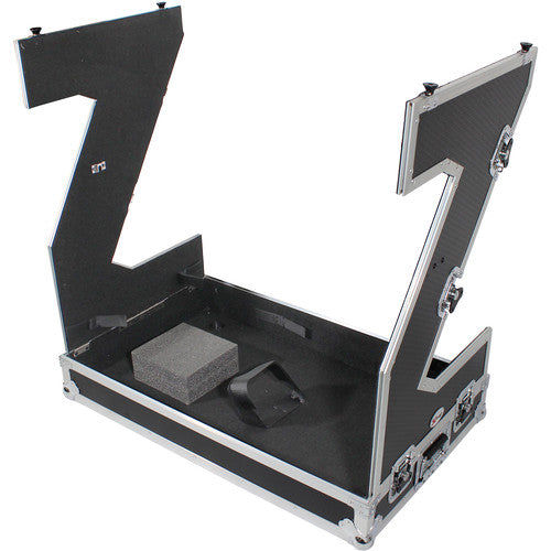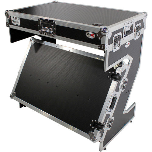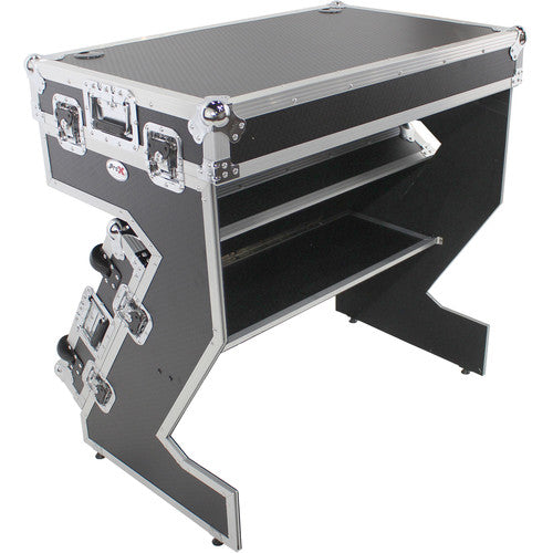 ProX XS-ZTABLEJR DJ Z-Table Junior Compact Workstation Flight Case w/ Table & Wheels - Silver on Black