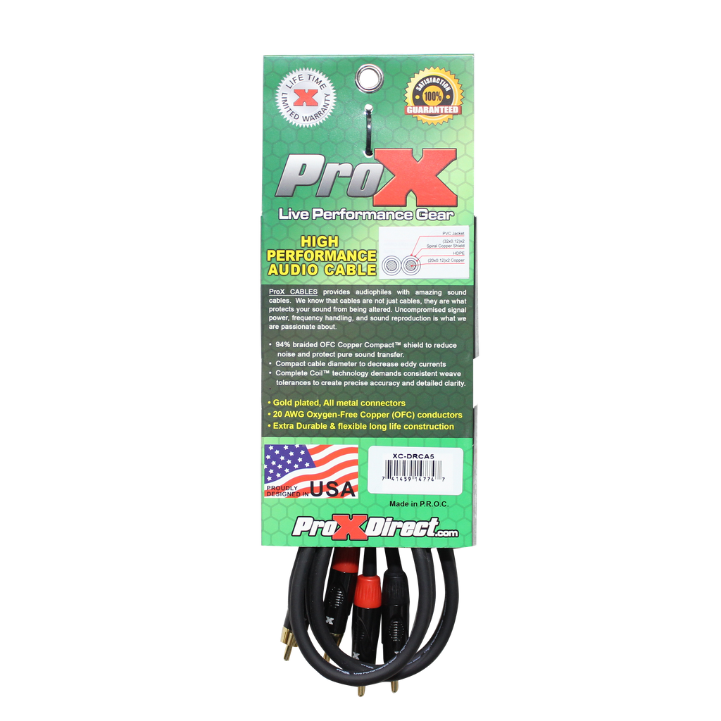 ProX XC-DRCA5 5 Ft. Unbalanced Dual RCA-M to Dual RCA-M High Performance Audio Cable