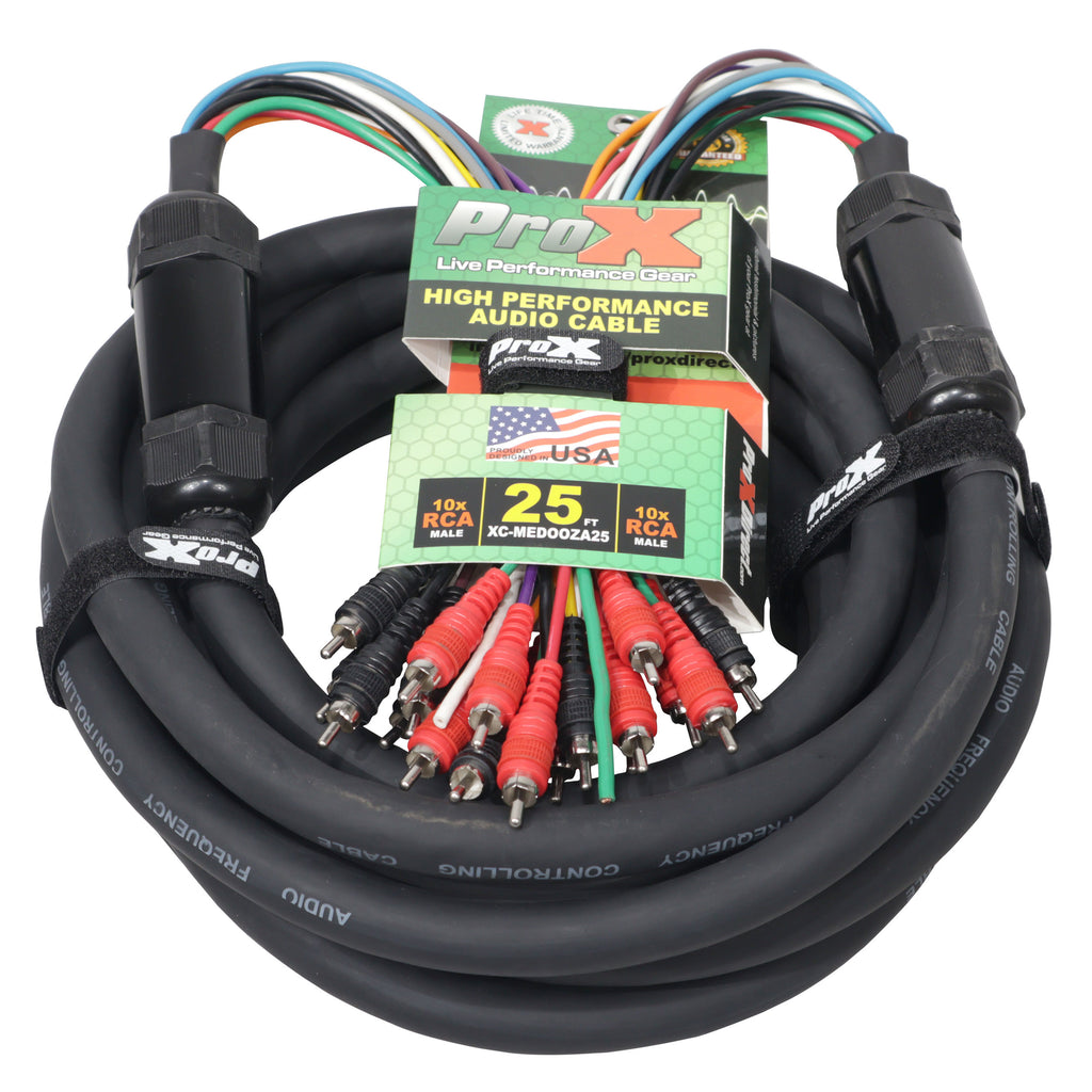 ProX XC-MEDOOZA25 25' ft 10 RCA Channel + 3 Power Cable for Marine and Car Audio Medusa Style Cable
