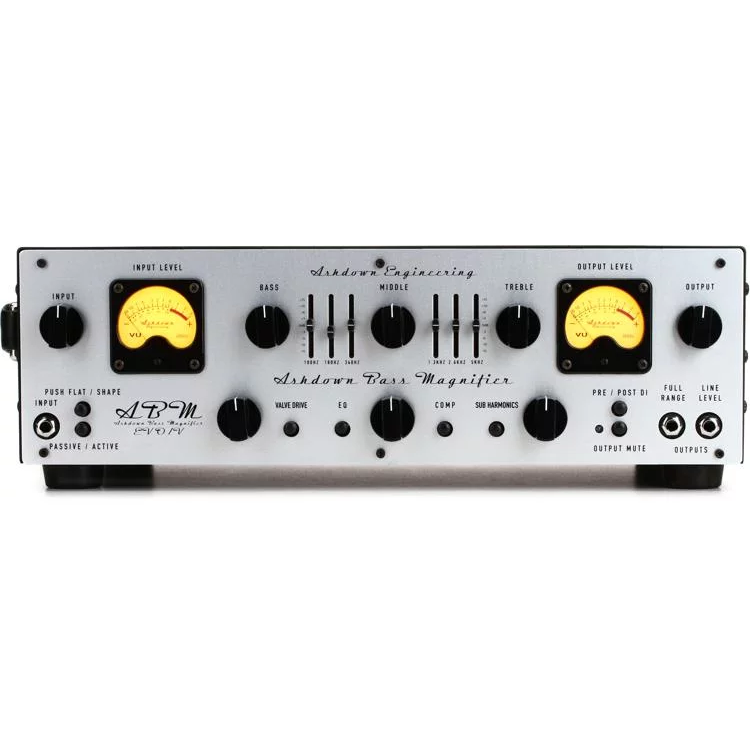 La section préampli de l'ABM 600 DR EVO IV est dotée de la technologie d'entraînement variable. Un bouton d'entraînement dédié vous permet de régler la quantité de courant circulant dans le tube 12AX7 pour des sons allant des nettoyages immaculés à l'overdrive musclé et grinçant. La section d'égalisation à 9 bandes ravira même les joueurs ABM de longue date, avec un contrôle tonal précis qui comprend des boutons séparés pour les graves, les médiums et les aigus, ainsi qu'un graphique étendu à 6 bandes pour un réglage fin. Le compresseur à 1 bouton et le générateur de sous-harmoniques familiers d'Ashdown fonctionnent pour rendre votre son plus serré et plus plein que vous ne l'avez jamais entendu auparavant et vous aider à revendiquer votre place légitime dans n'importe quel mix. Pendant tout ce temps, vous pouvez garder un œil sur vos niveaux d'E/S avec une paire de VU-mètres emblématiques d'Ashdown. Ajoutez à tout ce contrôle tonal la flexibilité de la commutation au pied - l'égalisation, la compression, les sous-harmoniques et même l'entraînement variable peuvent tous être activés et désactivés d'une simple pression du pied.