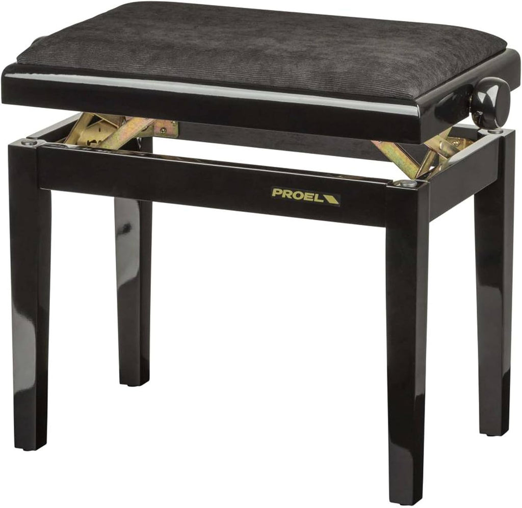 Proel PB90VBBBK Professional Wooden Keyboard Bench With Black Velvet Seat (Black Polished)