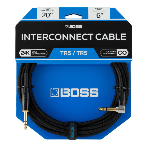 Câble TRS Boss BCC-30-TRA 1/4", coudé/droit - 30 pieds