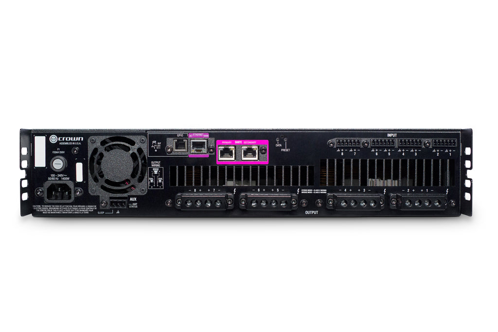 Crown DCI8X300DA Amplificateur de puissance 8 canaux, 300 W à 4 Ω avec audio en réseau Dante™/AES67 et 70 V/100 V/EN 54-16
