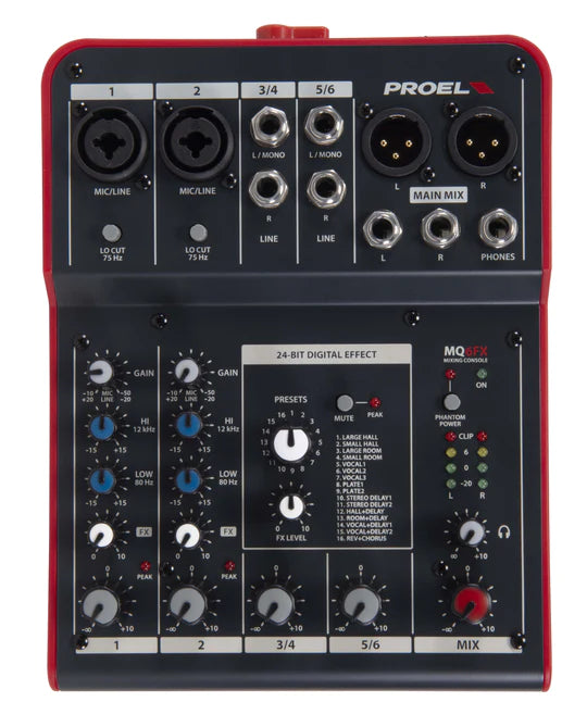 Proel MQ6FX Table de Mixage Compacte 6 Canaux Avec Fx