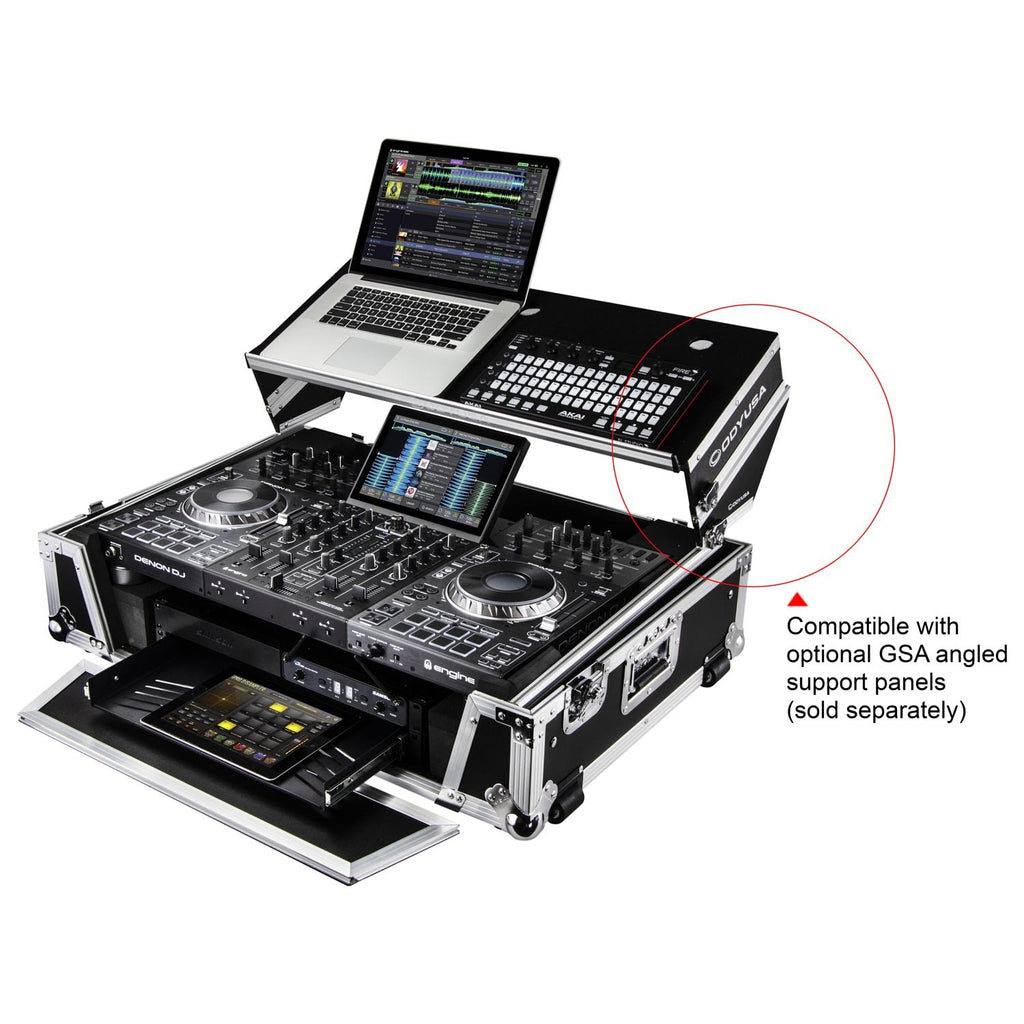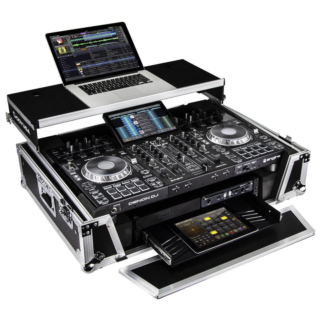 Odyssey FZGSPRIME4W2 Denon Prime 4 Flight Case avec plateforme brevetée Glide pour ordinateur portable et espace rack 2U