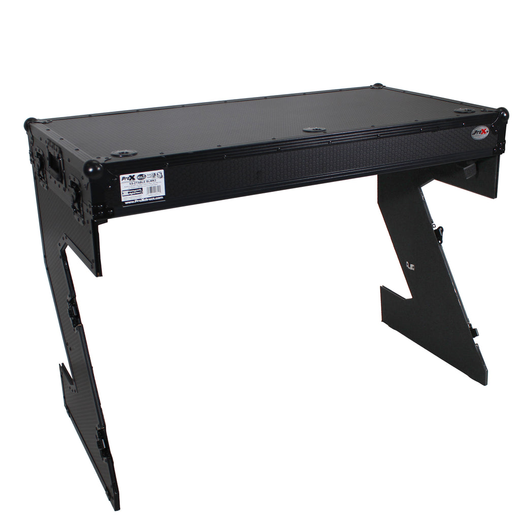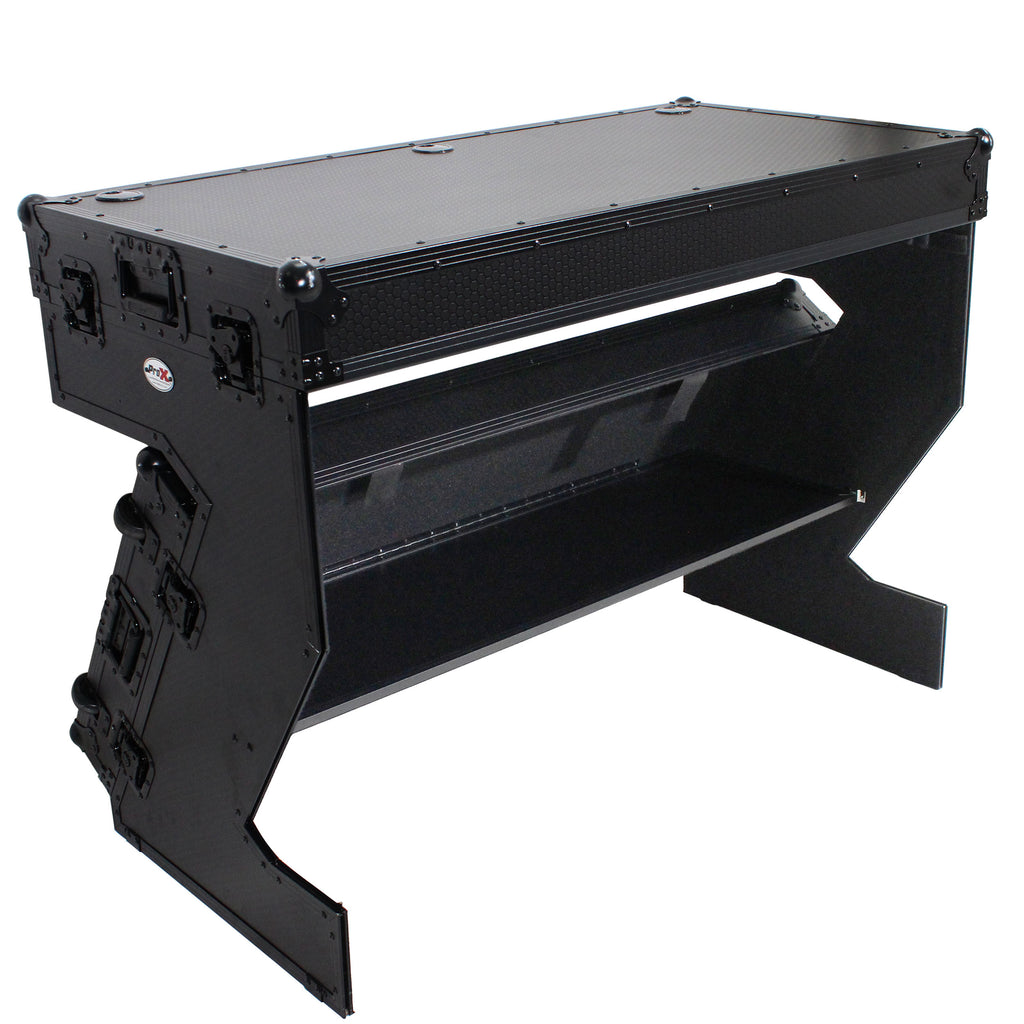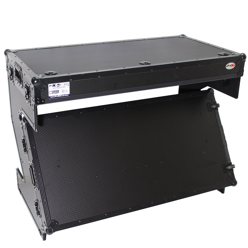 ProX-XS-ZTABLEBLMK2 Station de travail DJ Z-Table | Table de Flight Case Portable avec poignées et roues en W | Noir sur noir