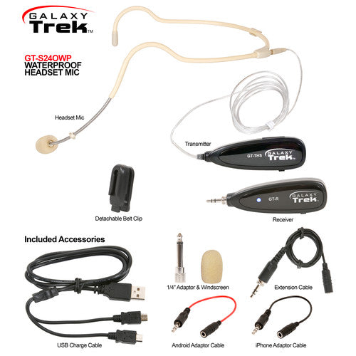 Système portable sans fil Galaxy Audio GT-S24OWPX avec microphone casque étanche