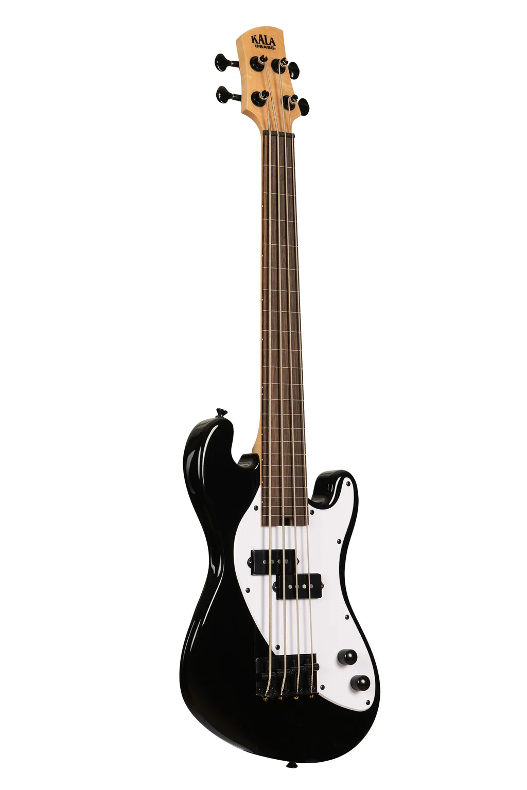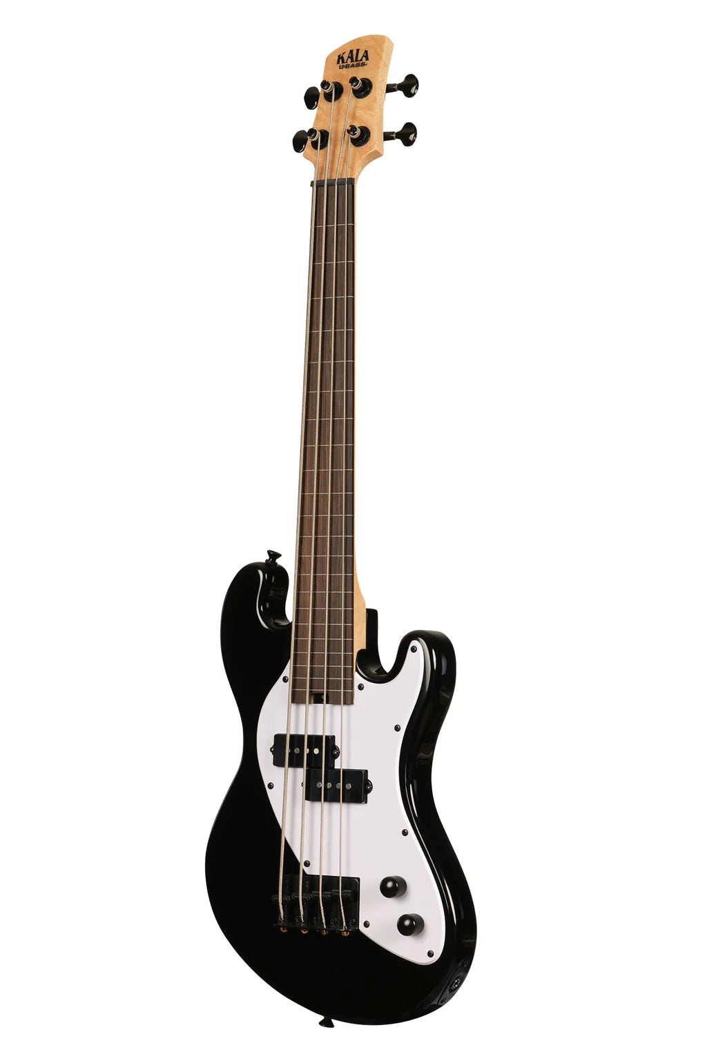 Kala UBASS-SB-BK-FL Basse ukulélé fretless 4 cordes Solid Body (Noir de jais)