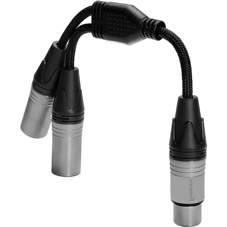 Câble répartiteur audio en Y Kondor Blue KB-YFXLRDM-BK double XLR mâle vers XLR femelle - 25 cm (noir corbeau)