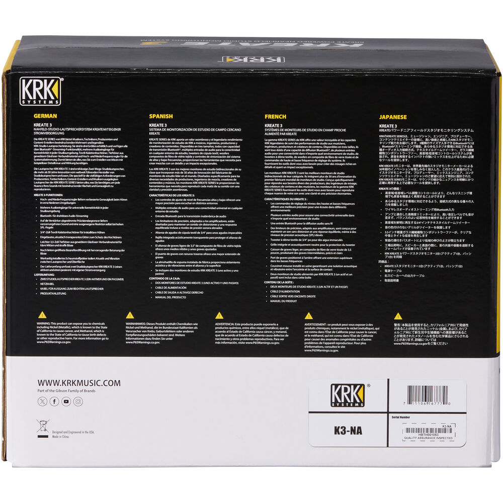 KRK KREATE 3 Active Two-Way Studio Reference Monitor (Black, Pair) - 3.5"