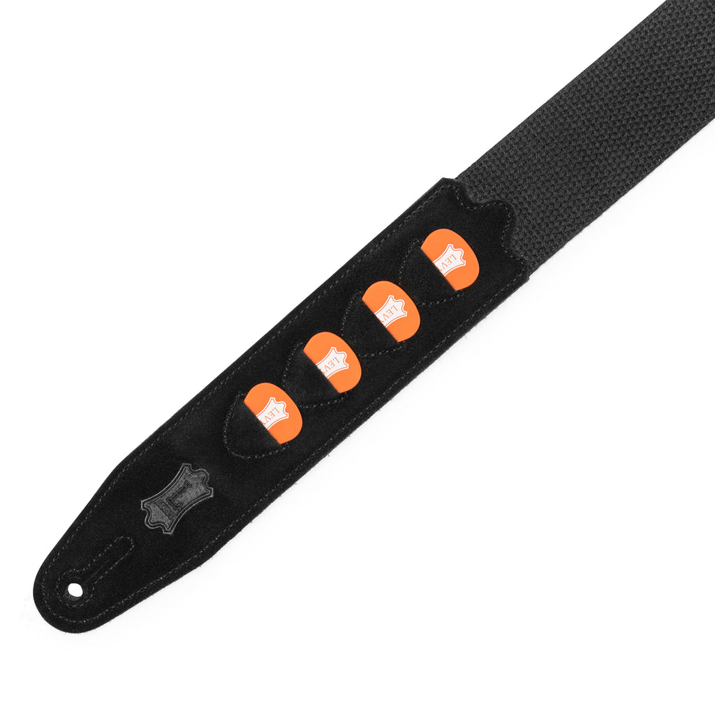 Levy's MC2PH-BLK Sangle de guitare en coton noir avec support pour médiators