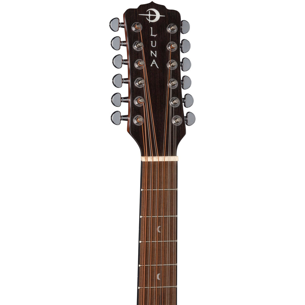 Développant la populaire série Luna ART V DCE 12 Vintage, la guitare électrique acoustique 12 cordes Vintage Dreadnought Cutaway ajoute une variété tonale plus riche à la gamme.