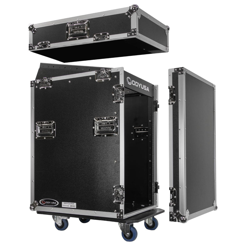 Odyssey FZ1316W - Rack combo vertical 16U incliné sur le dessus 13U avec roulettes
