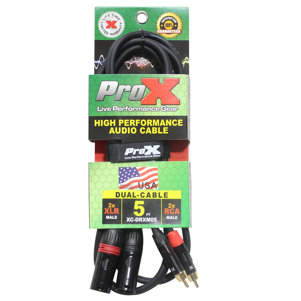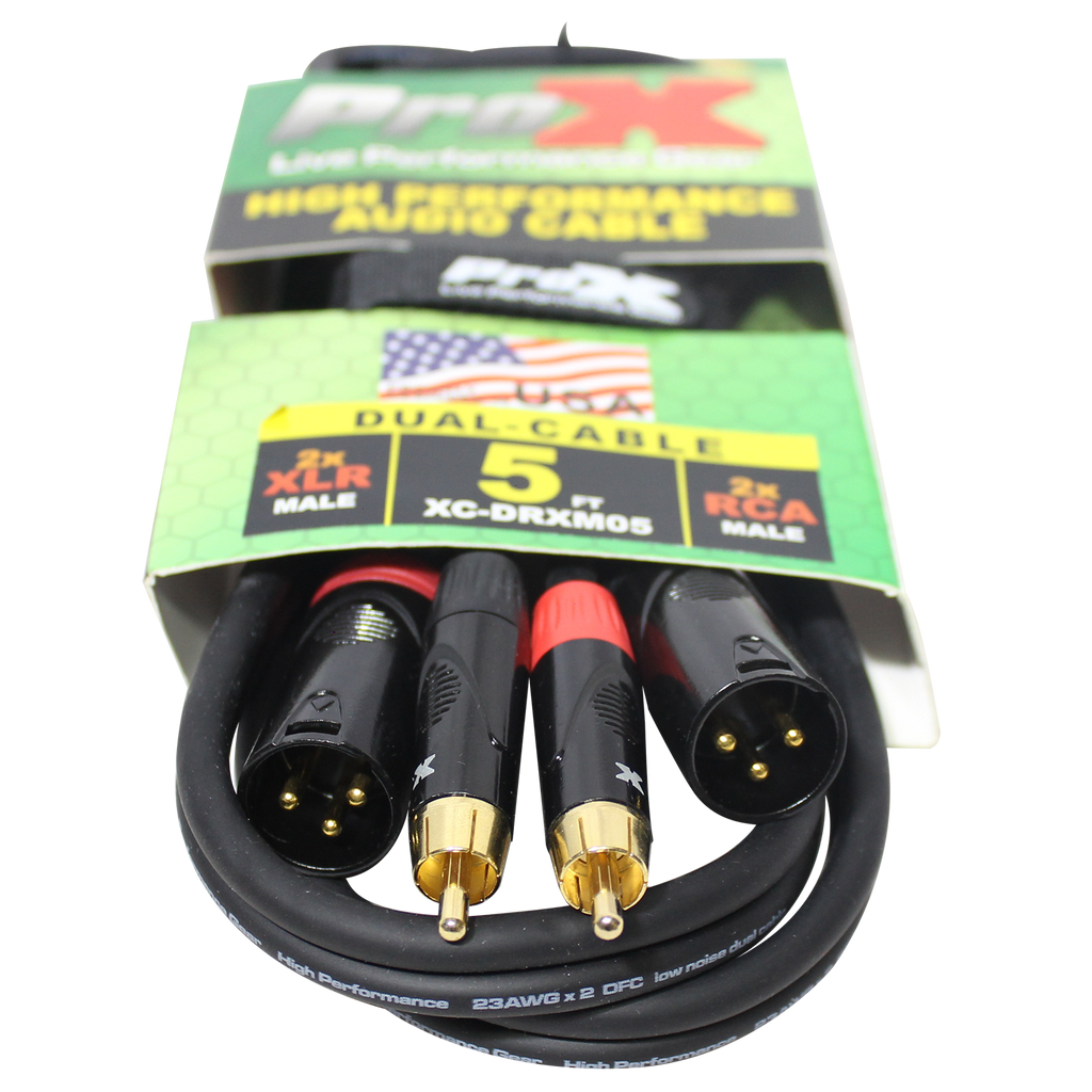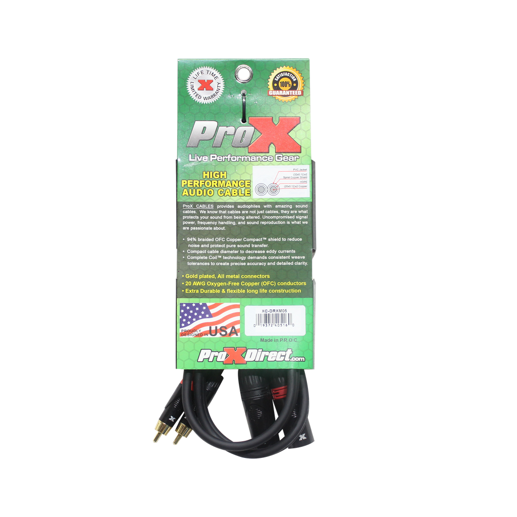 ProX XC-DRXM05 5 pi. Câble audio asymétrique double RCA-M vers double XLR3-M haute performance