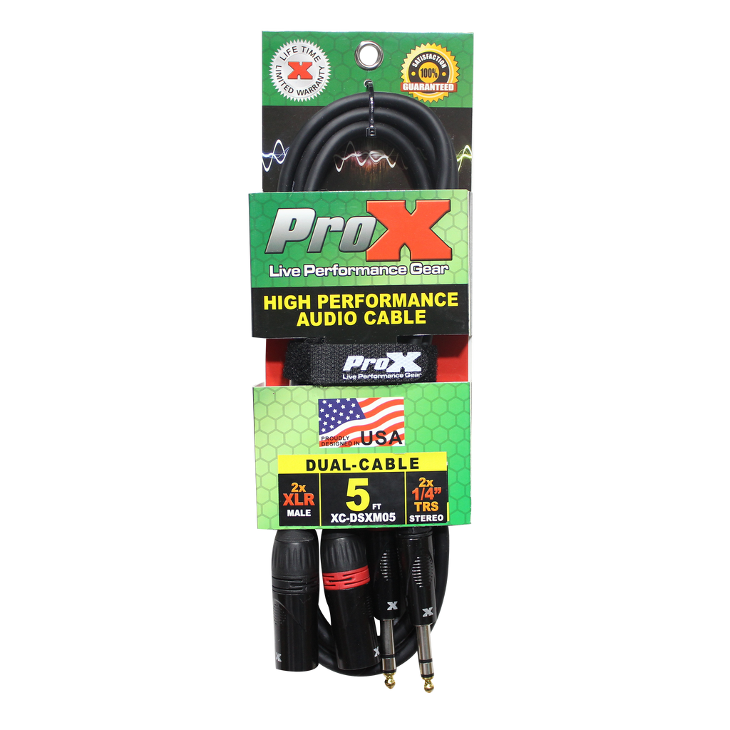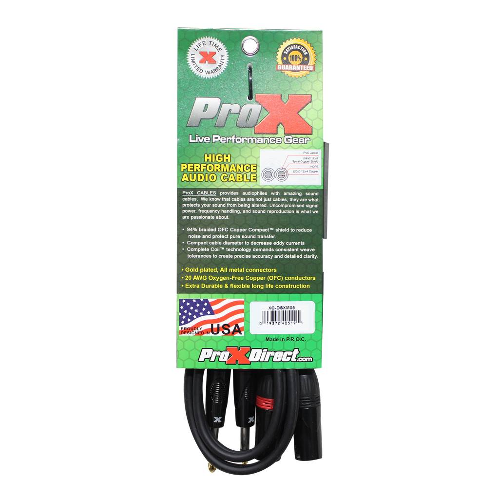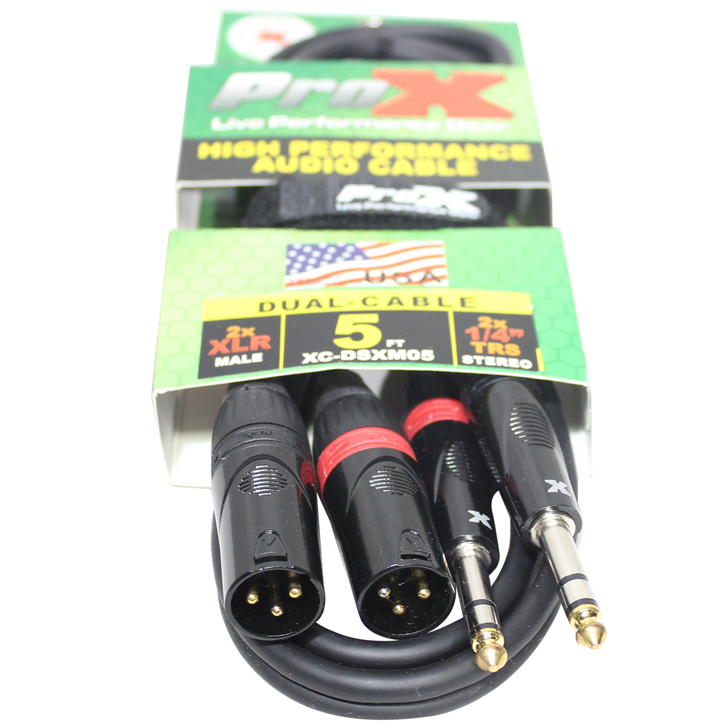 ProX XC-DSXM05 5 pi. Câble audio symétrique double 1/4" TRS-M vers double XLR3-M haute performance