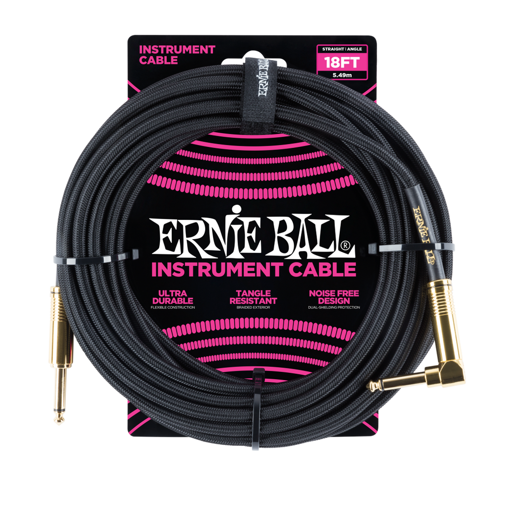 Câble tressé droit/angle Ernie Ball 6086EB (noir) - 18'