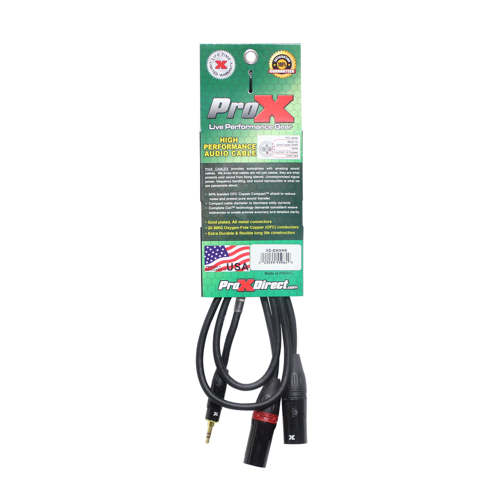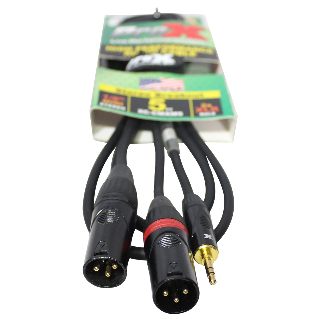 ProX XC-CMXM5 Câble audio en Y haute performance mini TRS mâle vers double XLR mâle 3,5 mm – 1,5 m