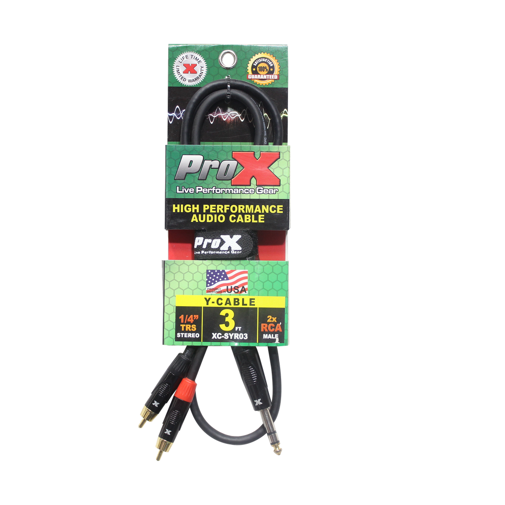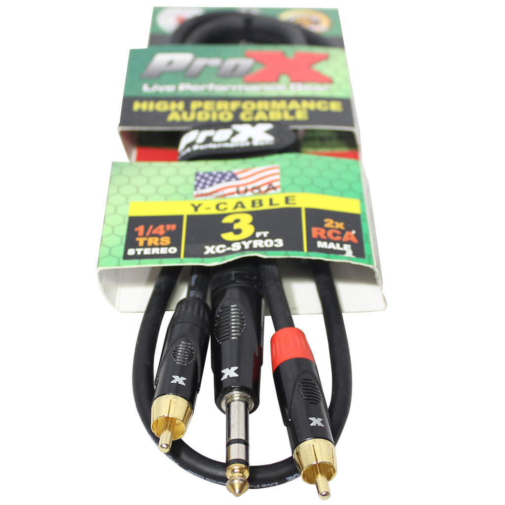 ProX XC-SYR03 Câble audio asymétrique haute performance 1/4" TRS-M vers double RCA-M - 3 pi.