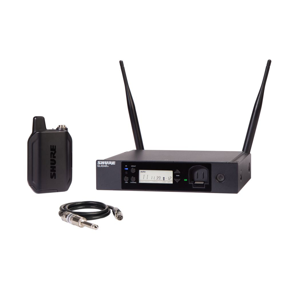 Shure GLXD14R+ système sans fil double bande avec récepteur demi-rack GLXD4R+ transmetteur GLXD1+ Bodypack et câble de guitare WA302