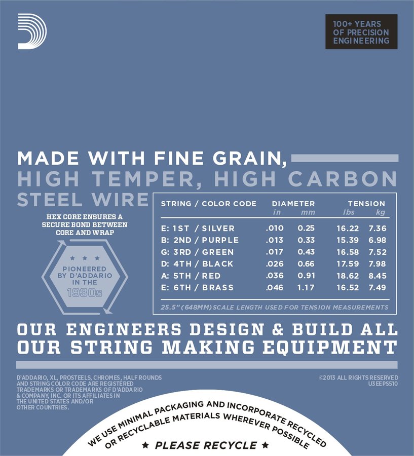 D'Addario EPS510 ProSteels Round Wound Electric Guitar Strings Light 10-46