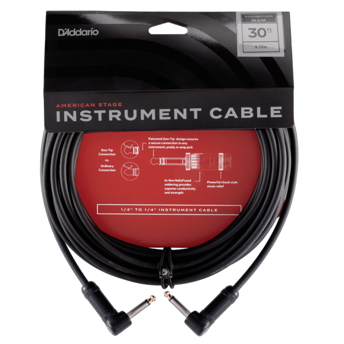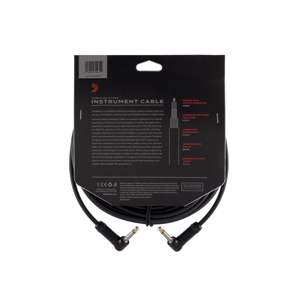 D'Addario PW-AMSGRR-30 American Stage Right To Right Angle Instrument Cable - 30ft