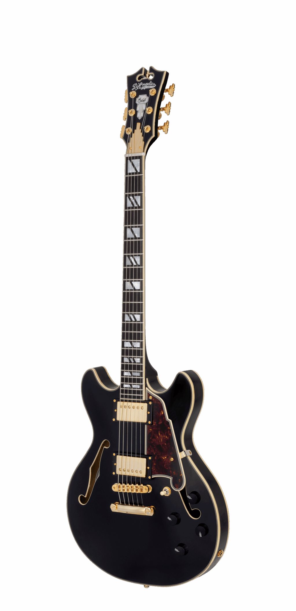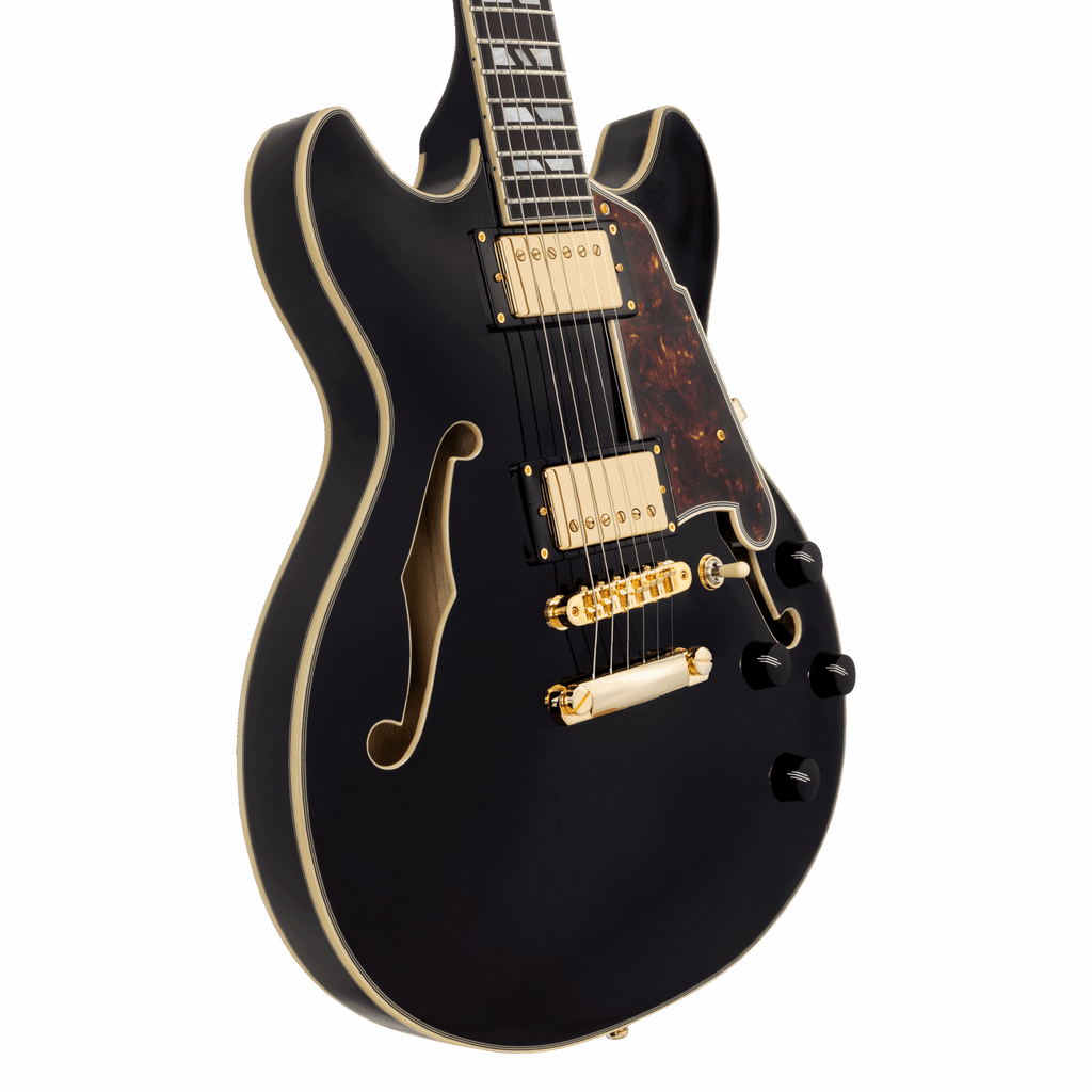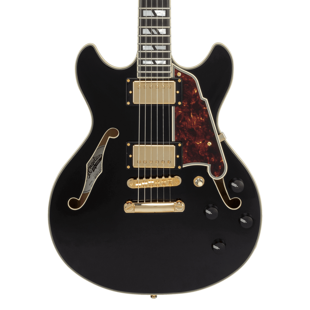 D'Angelico DAEMDCSBK2GS Excel Mini DC Semi-Hollow Electric Guitar (Solid Black)