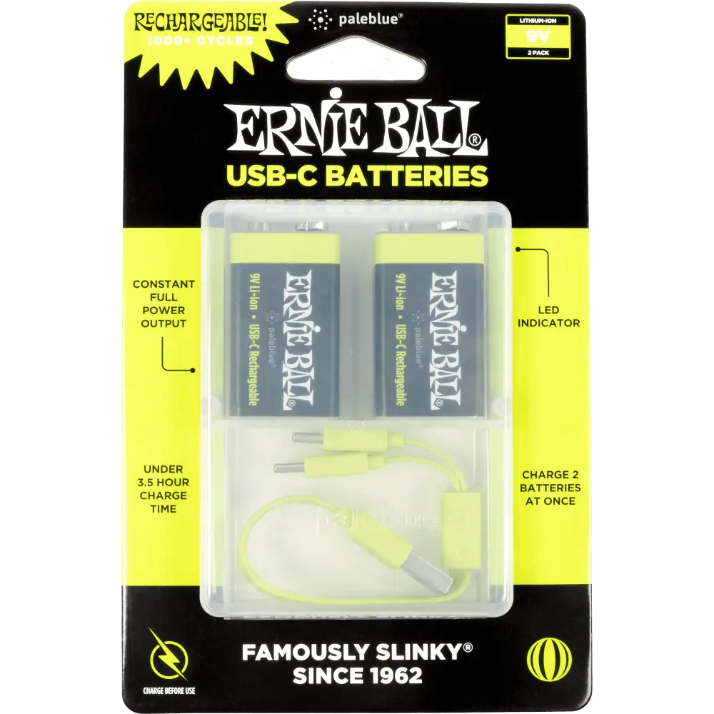 Ernie Ball 9642EB USB-C Rechargeable 9v Battery - 2 Pack